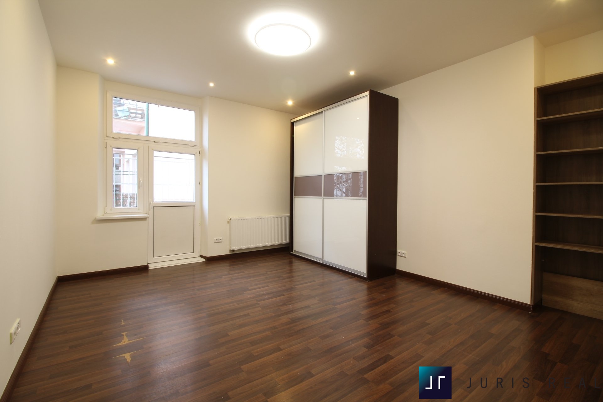 Byt disponuje velkorysým obytným prostorem s kuchyňským koutem, třemi samostatnými pokoji, koupelnou, samostatným WC, šatnou, komorou a prostornou vstupní halou. Promyšlené dispoziční řešení poskytuje maximální komfort pro rodinné bydlení i atraktivní řešení pro náročné klienty hledající reprezentativní městský byt.