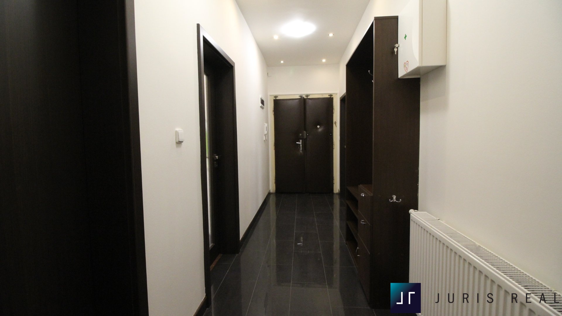 Koupelna je laděna do moderního designu a vybavena vanou se sprchovou zástěnou, závěsným WC a topným žebříkem. Další samostatné WC je přístupné z chodby. Byt prošel kvalitní rekonstrukcí zahrnující nové podlahy, interiérové dveře s obložkami, omítky i kompletní rozvody. Technický stav odpovídá vysokým nárokům na komfort a umožňuje okamžité nastěhování či zahájení pronájmu bez dalších investic.