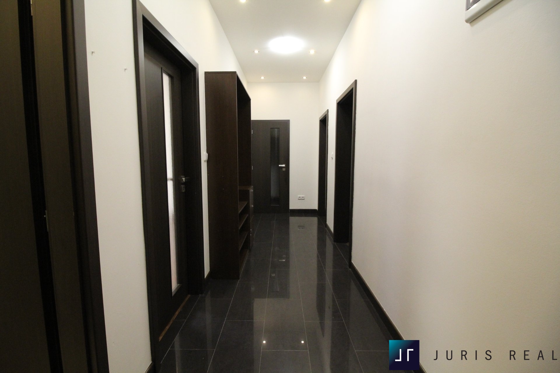 Tři neprůchozí pokoje zajišťují vysokou míru soukromí a flexibility využití – ať už jako ložnice, dětské pokoje či pracovnu. Dva pokoje jsou vybaveny vestavnými skříněmi na míru. Další úložné kapacity poskytuje samostatná šatna, komora a prostorná předsíň, díky nimž zůstává byt přehledný a funkční.