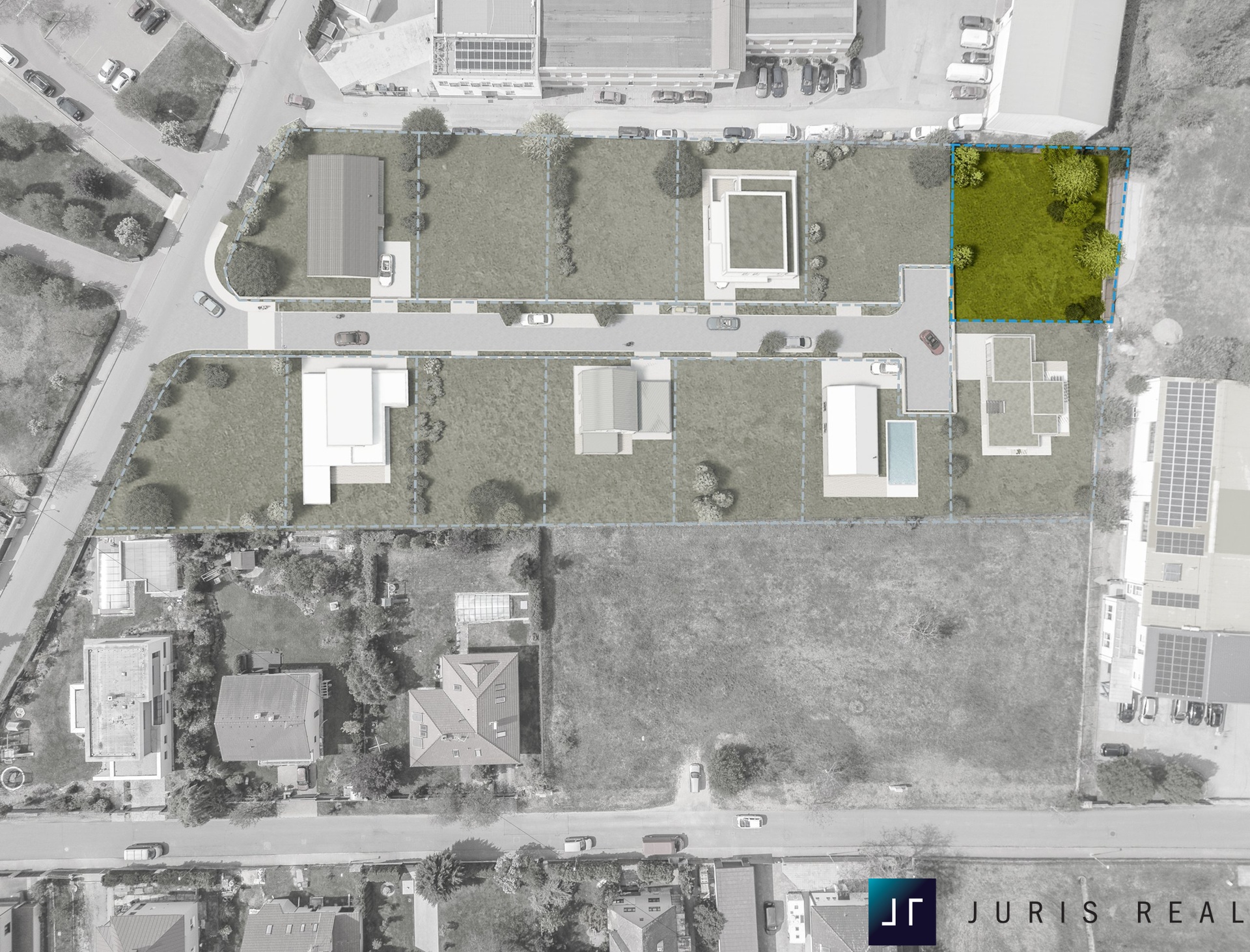 Cena obsahuje kompletní inženýrské sítě na hranici pozemku (elektřina, voda, plyn, kanalizace), vč. vybudování komunikace a veřejného osvětlení.